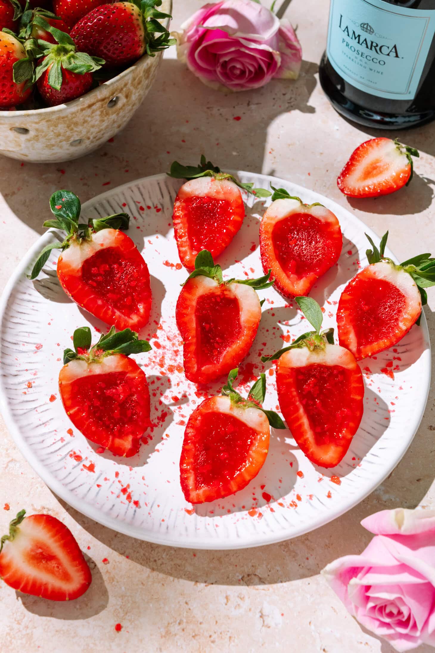 I tested this recipe with vodka and without, and both turned out delicious! You can easily adjust the alcohol level depending on how you plan to serve them. Enjoy with your Valentine alongside a glass of champagne or straight from the fridge on a pretty plate.