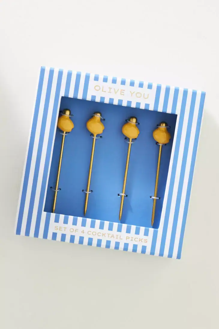These adorable olive cocktail picks a perfect for the friend that always needs extra olives. It comes in sweet packaging that says “olive you” making it even cuter for gifting.